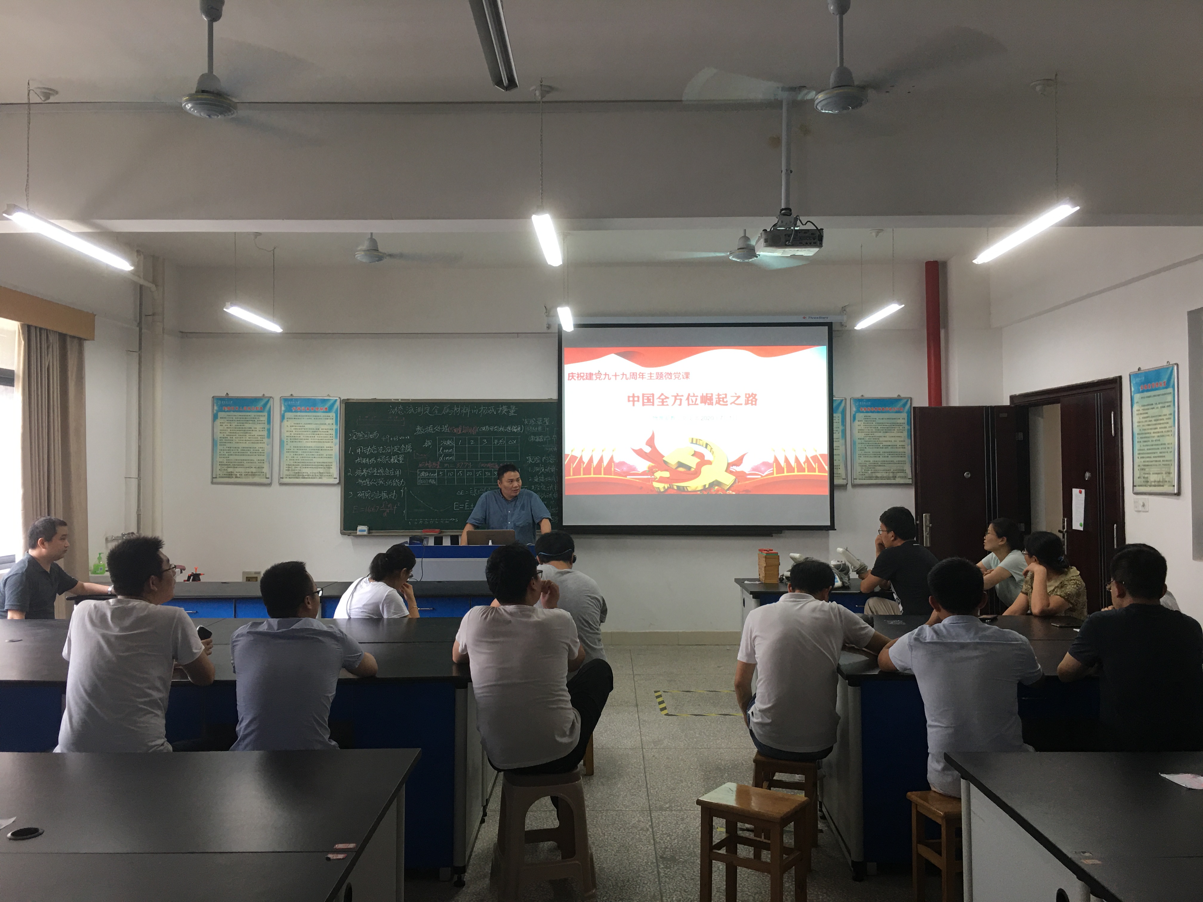为纪念建党九十九周年,在理学院党委组织和安排下,7月1日,理学院各教工党支部书记为所在支部全体党员上了一堂党课。