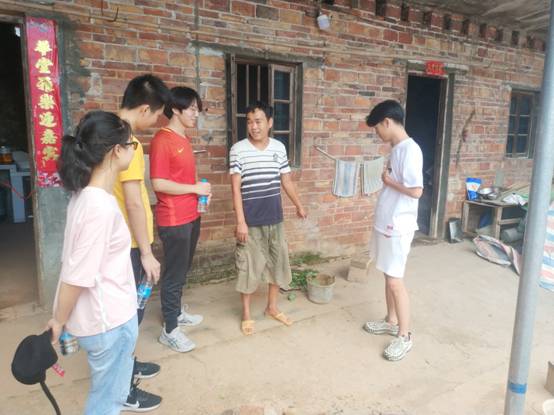 参观完村庄,实践队员便深入村民家里进行走访,与农户面对面交流,实地调研村民的家庭生活环境,并向大家宣传国家扶贫相关政策。来到村民章成东家,章成东向大家介绍了自己的家庭情况,谈到国家的扶贫政策,他激动的告诉实践队员“以前我们的生活很贫困,大家只是种点地、养几只鸡鸭自给自足,什么都不懂,想过上富裕的生活很难,真的很难。后来在乡政府的帮扶的带领下,我们的生活有了很大改善。”每位村民在提到这几年的发展的东芫村脸上都洋溢出了幸福的微笑。