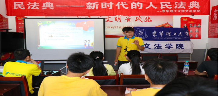7月31日到8月6日,东华理工大学文法学院“普法宣传”暑期社会实践队走进抚州市宜黄县神岗乡,本着服务村民和助推法制乡村建设的理念,开展了为期一周的“民法典进乡村”暑期社会实践活动,以民法典宣传为主题深入乡村开展普法教育,通过集市设点、趣味相声、情景喜剧、阳光课堂等形式,创新开展基层法制宣传活动,营造村民识法、学法、用法、护法的良好氛围。