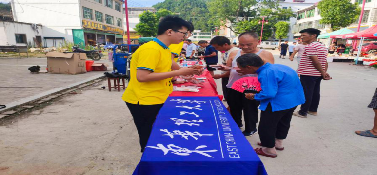 为了帮助村民们解决更多的“法律疑惑”。志愿者们利用村民赶集的时间段,摆摊设点,成立临时“法律咨询服务站”,在“摊位”上开展《民法典》宣传并接受群众咨询,场面十分热闹。为更好服务当地村民,志愿者邀请到东华理工大学文法学院副教授张再芝老师为需要帮助的村民提供线上法律咨询,形成了“线上键对键、线下面对面”的咨询模式。