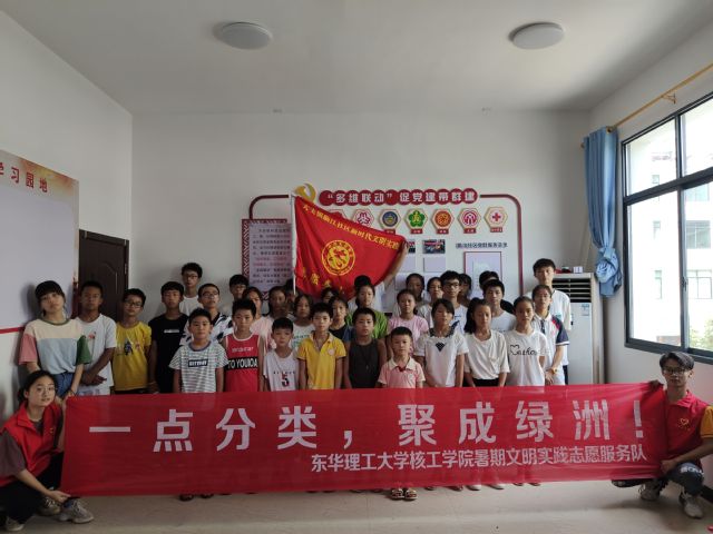 为深入学习贯彻习近平新时代中国特色社会主义思想和党的十九大精神,引导广大青年学生积极投身新时代文明志愿服务,近日,核科学与工程学院暑期文明实践队一行4人走进江西省吉安市天玉镇临江社区新时代文明实践站,给当地中、小学生开展“一点分类,聚成绿洲”垃圾分类知识宣讲大学生文明实践志愿活动。