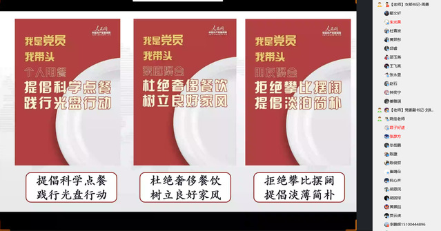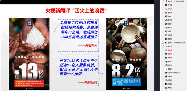 活动最后,支部全体党员在精心制作的“拒绝舌尖上的浪费”H5上进行接力活动,表达了对拒绝餐饮浪费的坚定决心。