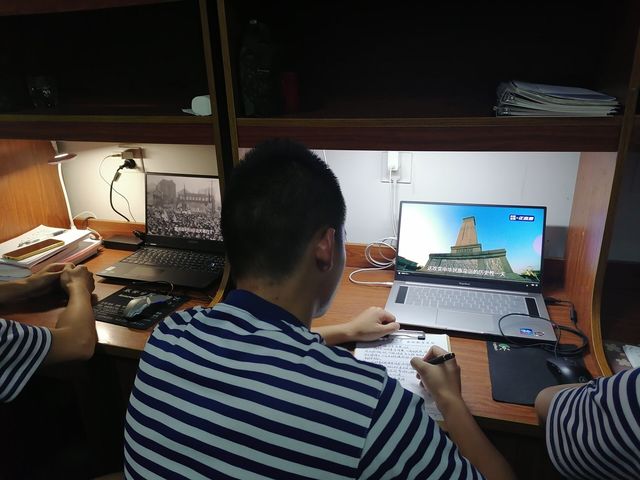 党支部书记宋建勇老师在直播结束后讲到:“在75年前的今天,革命先辈用鲜血和生命换来了抗战的胜利。中国由弱到强,一代又一代的革命军人用意志铸造信念,用生命铸就忠诚。”最后,宋建勇要求全体海军定向培养士官必须加强文化知识学习和军事训练,努力提高军政素质,牢固树立正确的世界观、人生观和价值观,必须做到“听党指挥、能打胜仗、作风优良”,争做“有灵魂、有本事、有血性、有品德”的新时代“四有”军人,不负青春韶华。(图/文 张弛)