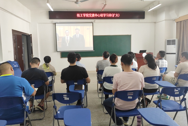 9月8日上午10时,核科学与工程学院党委在地学楼C501召开中心组学习会(扩大),集中收看“全国抗击新冠肺炎疫情表彰大会”现场直播,认真聆听习近平总书记的重要讲话,亲身感受国家勋章和国家荣誉称号获得者的风采。核工学院党委委员、各系(科室)负责人、支部书记参加了学习。学习会由院党委书记余斌主持。