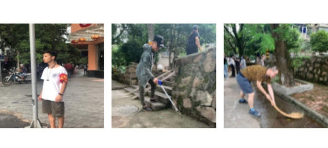 整整一天8小时的志愿者活动,从上午到下午,从下午到晚上,天气忽晴忽雨,学院党委书记邹红梅、副院长王春阳带领黄霜阳,欧家玉、孙泉,董超、杨菁、刘玉群等教工党员、志愿者和同学们始终比肩而行。老师从学生的身上看到曾经年少的自己那份劳动中的纯真与美好,学生从老师的身上看到的是时间未曾磨蚀的执著与责任……师生们在创卫中在劳动中共同进步与成长,更加坚定了为人民服务的初心与使命。(图/黄霜阳 文/ 蒋晓帆)