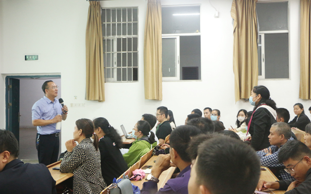 院长刘义保在会上作了专题报告,他从学校、学院概况、师资队伍、人才培养、大学生综合素质教育等方面全面介绍了学院的基本情况,深入阐述了学院的办学理念,以及自己的治院治学思想。他指出,东华理工大学“为核成立,因核成名,以核成势”,“ 核”是学校的硬核实力和响亮名片。核工学院作为学校的特色品牌学院,始终坚持培养“用得上、留得下、上得去 ”的高素质复合型、应用型人才,积极服务国家的国防军工、能源事业发展和江西经济社会建设。刘义保强调,在人才培养过程中,核工学院始终坚持将“四个一切”的核工业精神融入到教育教学全过程中,注重培养学生的科学精神、科学思想、科学方法,培育学生的家国情怀、使命担当和奉献精神;在课外活动中,将“核+X”创意大赛、核技术应用大赛、核科普知识大赛打造成“核科学文化高地”, 以达到以文化人、以文育人的目的,助力学生成长成才。在互动交流环节,刘义保还耐心地解答了家长、学生提出的问题。