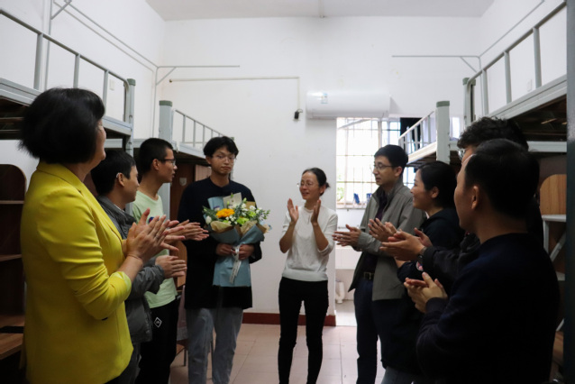 9月21日上午,文法学院党委书记李儒俊、党委副书记游艺、副院长唐东堰、学团办主任张井华、20级法学专业班主任吴志宇等领导老师一齐来到法学专业新生郭佳奕同学的宿舍。据悉,21日这天正巧是郭佳奕同学的生日,学院领导老师知晓后,集体为郭佳奕同学准备了一场别开生面的“生日会”。