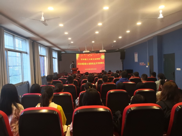 9月22日下午,文法学院2020级硕士研究生开学典礼在文法楼406小礼堂隆重举行,典礼由学院党委书记李儒俊教授主持,学院院长徐国华教授、副院长刘俊教授、党委副书记游艺博士、副院长唐东堰副教授出席典礼,学院硕士生导师代表、研究生管理科(室)负责人、2020级全体硕士研究生等参加典礼。