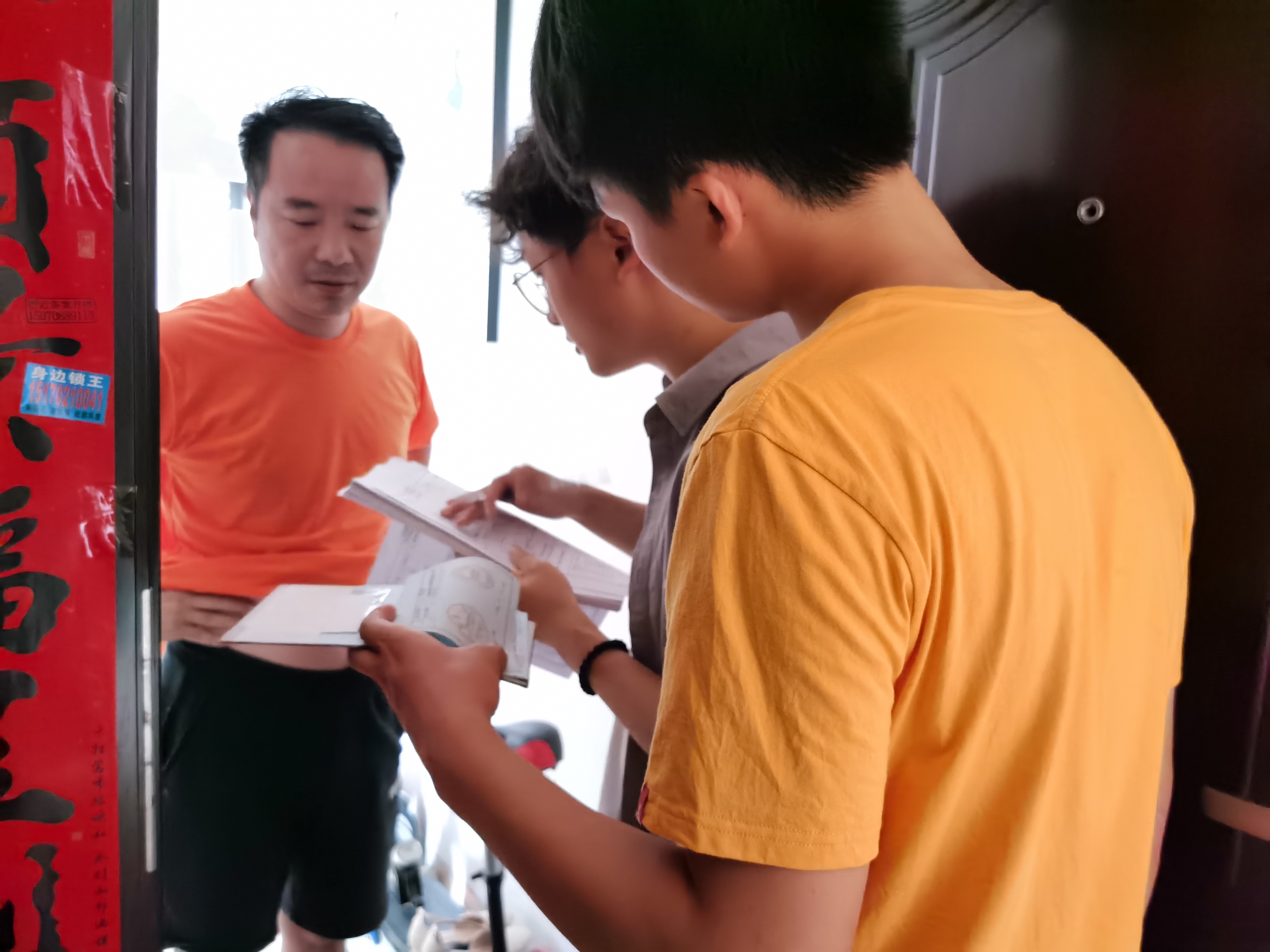 连绵不绝的阴雨天气阻挡不了学院志愿者的热情,他们准时到岗,在经过短暂的培训之后,就开始挨家挨户的敲门工作了,宣传、调查、填表。虽然工作量大且繁琐,但是难不住具有极高统计学专业素养的同学们,在他们的积极协助下,社区在短短两天内圆满完成人口普查工作。