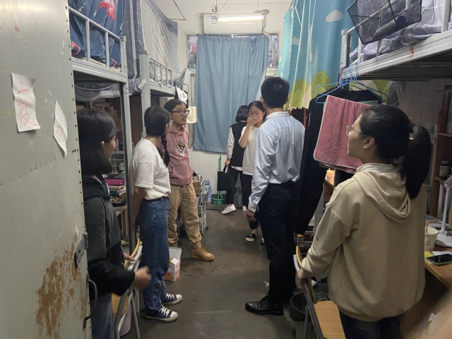 9月29日下午6:00,师范学院组织学院学团办老师、全体辅导员、班主任深入学院所有研究生及本科生宿舍开展地毯式安全隐患大排查,对发现的问题,相关宿舍成员立即认领并承诺及时整改。