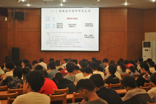 2020年9月28日晚上,为使国家的学生资助政策深入人心,确保各项政策更好地顺利实施,我院在软件楼四楼报告厅召开“资助政策,助我成长——资助宣讲会”,参加此次宣讲会的有学校资助中心宣传大使2018级土木工程专业张莉莉、学院学团办胡敏老师和全体新生。