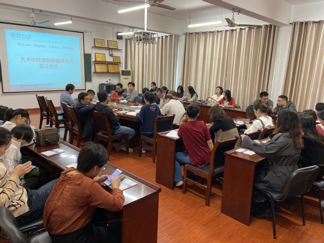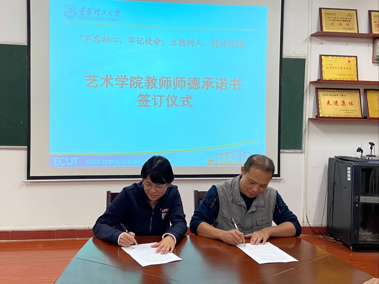 为进一步规范学院教职工履职履责行为,落实立德树人根本任务,提高教师思想政治素质和职业道德水平,艺术学院组织全体教师签订了“东华理工大学教职工师德承诺书”。