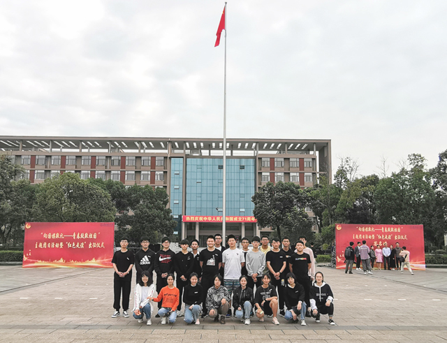 10月1日清晨,核工学院23名新生代表在青春广场参加学校“向国旗敬礼——青春致敬祖国”升旗仪式,与全校师生代表共同庆祝祖国母亲的71华诞,在礼敬国旗的肃穆氛围中遥想前辈峥嵘岁月,深植爱党爱国情怀。仪式结束后,大家在国旗前合影,纪念大学第一次升旗仪式,致敬五星红旗,礼赞伟大祖国,将爱国情怀内化于心。