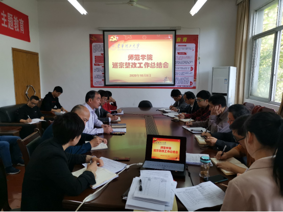 10月9日下午,师范学院在行政楼339会议室召开巡察整改工作总结会,参加会议的有学院领导班子成员、党委委员、全体科级干部、各支部书记等,会议由党委书记章国平主持。