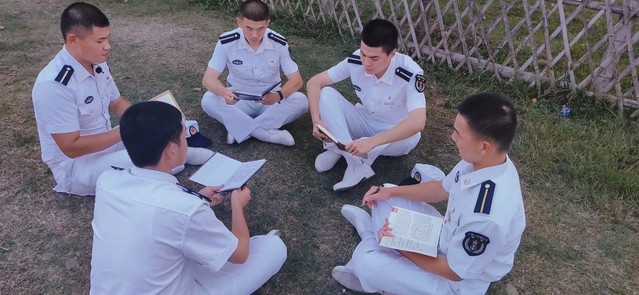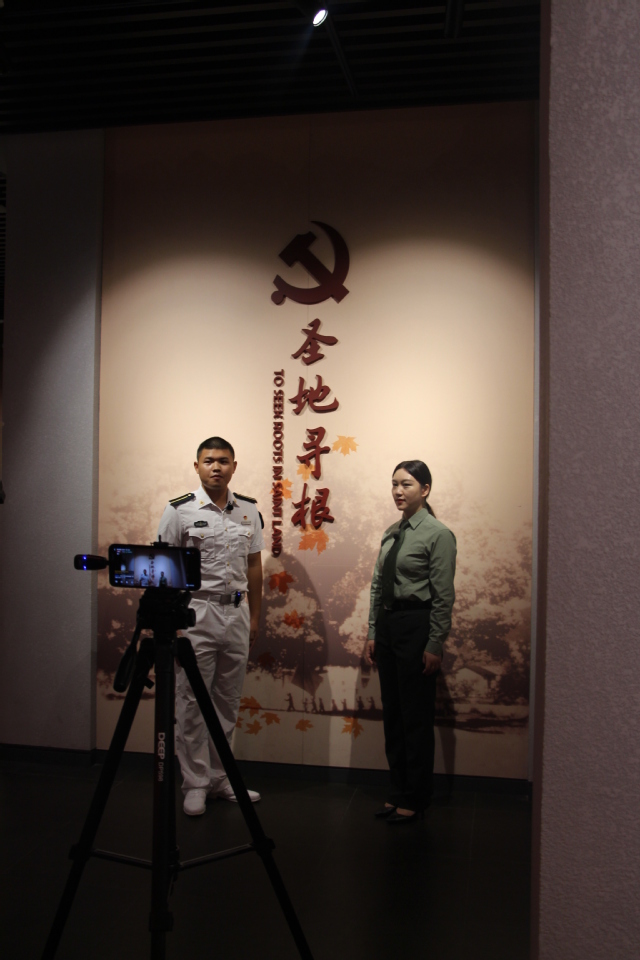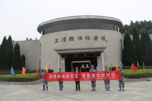在于都、三湾改编纪念馆实地红色走读中,团队队员们以边走读边直播的方式将革命历史、革命传统和革命精神通过新媒体、自媒体的方式传输给在校的全体海军定向培养士官;并直播采访了老红军后代、抗美援越老兵孙观发和江西省“五好”讲解员、三湾改编纪念馆陈洁。团队队员们分别在走读各小组召集人刘轩甫和张金辉的带领下,在走读现场召开党小组会,谈走读心得。刘轩甫同志在交流中感慨地说:“自己作为一名海军定向培养士官党员,通过走读深刻认识到坚决执行党对军队的绝对领导的重要性,自觉铸牢军魂意识,保证自己的军心永远凝聚在党旗、军旗之下”。