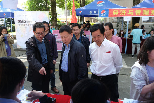 刘紫春书记一行先后视察了迎新接待点、学生社团展示区等多个迎新地点,详细了解各组织与志愿者服务工作的进展情况,询问了迎新报到的具体流程和各系的迎新部署,对“新生福利发放”“纪念章留念”等创意迎新方式给予肯定与赞赏。