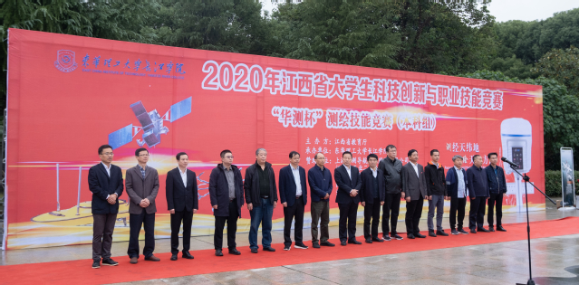 2020年10月17日上午8:00,由江西省教育厅主办,东华理工大学长江学院承办的2020年江西省大学生科技创新与职业技能竞赛——“华测杯”测绘技能竞赛(本科组)在东华理工大学抚州校区拉开帷幕,东华理工大学党委副书记刘紫春、副校长陈晓勇出席开幕式,并深入比赛现场指导工作。出席本次大赛开幕式的嘉宾还有:教育部高等学校测绘类专业教学指导委员会秘书长、曾连续担任全国大学生职业技能大赛测绘赛项总裁判长的翟翊教授、江西省测绘地理信息学会秘书长熊勇、东华理工大学抚州校区管委会领导、东华理工大学长江学院党政领导班子,以及为比赛提供技术与支持的单位代表:上海华测导航技术股份有限公司南昌分公司技术经理刘志强、江西省核工业地质局二六八大队长周晓华、抚州市自然资源局副局长周福生、南昌华达测绘仪器有限公司经理赵元俊、江西地信数云科技有限公司经理汪洋。