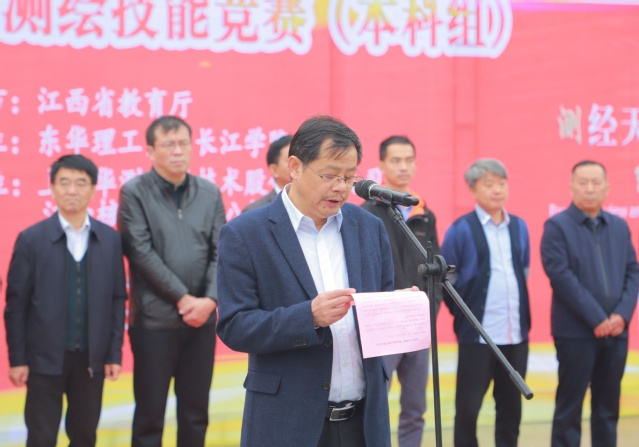 校党委副书记刘紫春为开幕式致辞,指出举办测绘技能竞赛的目的是为了展示高校测绘地理信息类专业实践教学成果,检验学生对生产实践问题的分析与处理能力,更是为了促进测绘地理信息类专业教学改革和人才培养,促进学生的就业创业能力的提升。其次,希望各位参赛选手在竞赛中充分发挥聪明才智,赛出风格,赛出水平,希望全体裁判员和工作人员遵守比赛规则,坚持原则,认真负责,确保竞赛顺利进行,并预祝竞赛取得圆满成功。