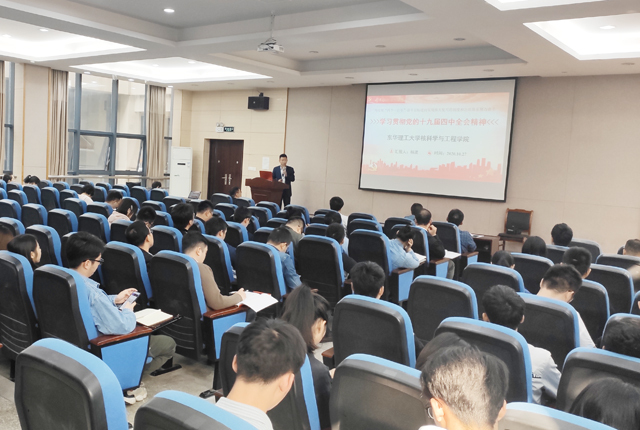 随后,党政办主任贺锦、核工程与核技术系主任杨波分别就《中国共产党党员教育管理工作条例》、党的十九届四中全会精神进行了详细解读。