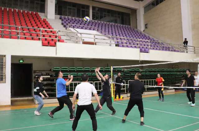 赛场上,队员们精神抖擞,身姿矫健,时而鱼跃救球,时而跳起扣杀,配合完美,精彩瞬间交迭呈现,整场比赛高潮不断。场下教工学生观众热情高涨,助威声、欢呼声,呐喊声不绝于耳,气氛文明热烈。经过15场的单循环赛后,激烈的比赛缓缓拉下帷幕。机关代表队五场比赛全胜荣获冠军、应用与工程系代表队获得亚军、人文与艺术系代表队获得季军。
