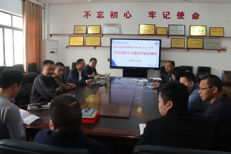 11月3日上午,创新创业教育学院在学院308会议室召开第九次中心组学习(扩大)会议,传达学习党的十九届五中全会精神,学院全体教职工参加会议,会议由学院党总支书记王合义主持。