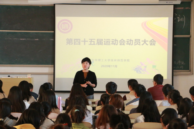 为进一步做好学校运动会期间相关工作,师范学院于11月10日中午在二教阶十四召开第四十五届运动会动员大会。学院党委副书记江汶俊、学团办老师出席了动员会,院团委、学生会全体成员、各班班干部以及全体运动员参加了本次动员大会,会议由学团办郭佳磊老师主持。