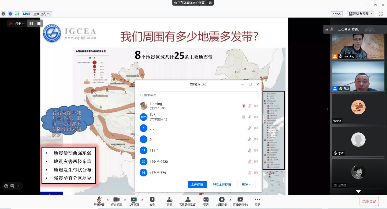 宣讲中,陈杰研究员从地震是什么?地震是怎么发生的?怎么减轻地震危害?可否预报地震?地震年代学测定方法等方面为大家做了详细的讲述。