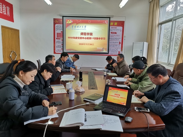 11月30日上午,师范学院党委理论学习中心组举行2020年第十四次集体学习,深入学习领会党的十九届五中全会精神,安排部署全院学习宣传贯彻工作。院党委书记章国平主持学习会并作学习宣传贯彻全会精神工作部署,学院党政领导班子成员出席学习会,党委理论学习中心组成员、学院各科室负责人及全体辅导员参加学习。