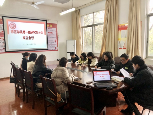 11月30日下午,师范学院第一届研究生分会成立会在抚州校区学府校园行政楼339会议室举行。师范学院党委副书记江汶俊,学院学科建设与研究生学生管理工作办公室、研究生党支部老师及第一届研究生分会全体学生干部参加会议。会议由师范学院第一届研究生分会副主席胡雨薇同学主持。