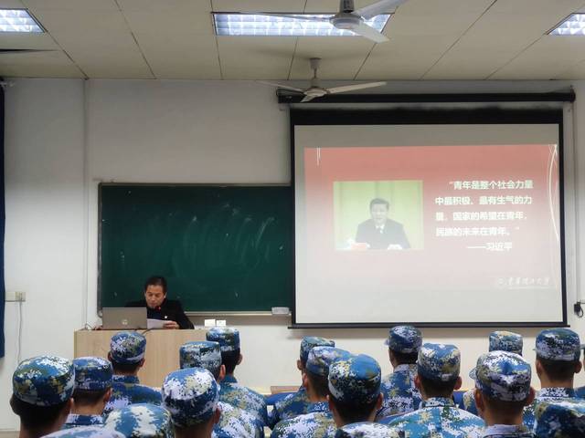为深入学习宣传贯彻党的十九届五中全会精神, 12月7日下午2:00,国防教育学院党委在学府校区1-312教室举办了党十九届五中全会精神宣讲活动。学院全体党员、入党积极分子及2018级海军定向培养士官参加,学院党政负责人、院长赵克锋做了题为《学习贯彻党的十九届五中全会精神,立志争做新时代革命军人》的宣讲。