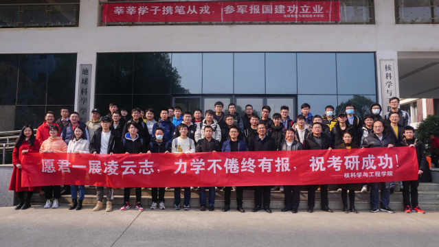 2020年12月26-27日是2021年全国硕士研究生招生的考试时间。为了给考研学子送上祝福、加油鼓励,引导他们沉着应对、坚定信心,12月25日上午,核科学与工程学院在地学楼C503会议室举行了“2021届考研学子出征仪式”。院党委书记余斌、院长刘义保、党委副书记刘顺祥、副院长李小燕,全体辅导员、17级部分班主任及考研学子参加仪式。仪式由院团委负责人欧阳威老师主持。