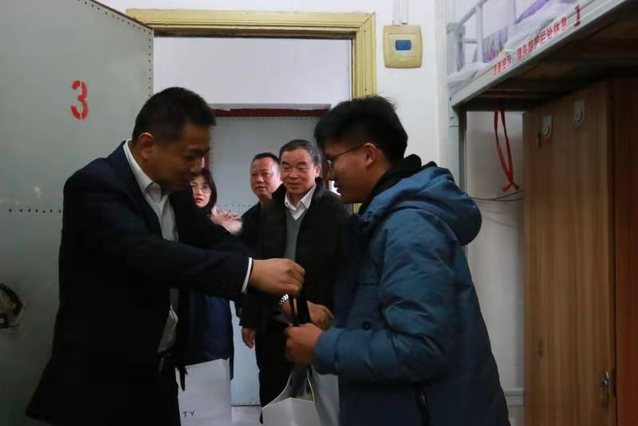 走访过程中,刘云海仔细询问我院贫困生在校的学习、生活等情况,认真了解学生的实际困难,并提出殷切期望,勉励同学要正视困难,磨炼意志,在逆境中自强不息。并鼓励他们始终要保持勤奋拼搏的精神和吃苦耐劳的品质,树立自信心,努力奋斗,用知识改变自己和家庭的命运。同时,刘云海还为贫困学生送上羽绒服等保暖用品,让贫困学子在寒冬中感受到来自学校的深切关爱。