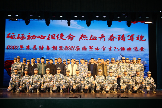 2020年12月25日晚7点,学院成功举办了主题为“砥砺初心担使命,热血青春铸军魂”2020年度总结表彰暨2021届海军定向培养士官入伍欢送会。海军航空大学岸防兵学院学兵一队教导员陈勇中校、区队长徐天翔、胡云博、姬长江、国防教育学院院长赵克锋、长江学院党委副书记陈凌、长江学院团委书记李晶、长江学院机电系党总支书记管小明、长江学院应工系主任胡鹏、国防教育学院全体老师及任课老师出席了本次晚会。
