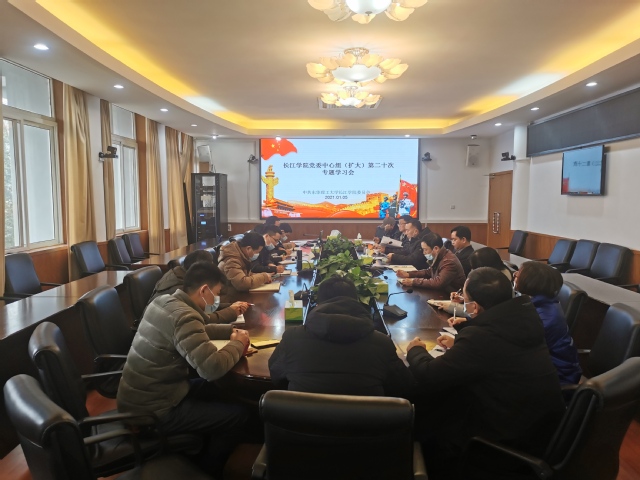 2021年1月5日下午,长江学院党委在行政楼三楼会议室召开党委中心组(扩大)第一次专题学习会。学院领导班子成员、党委委员、各系党总支书记和主任、直属党支部书记、相关职能部门负责人出席并参加了会议,会议由学院党委书记陈泉水主持。