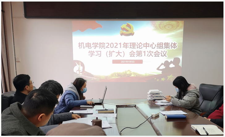 1月5日上午,机电学院党委在320会议室召开2021年理论中心组集体学习(扩大)会第1次会议,学院领导班子成员、党委委员、工会主席、各系(室)主任及各党支部书记参加学习。