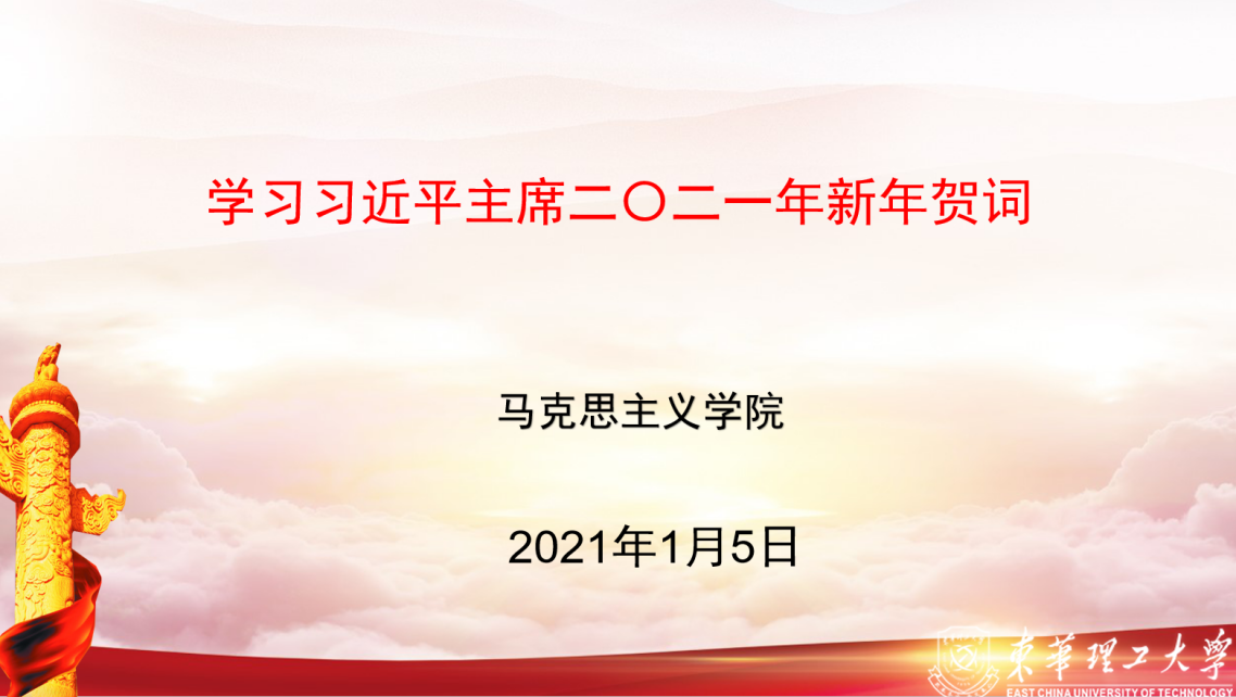 1月5日下午,马克思主义学院在测绘楼505会议室组织学习习近平主席二〇二一年新年贺词。会议由学院党总支书记华启和主持,学院全体教师参加。