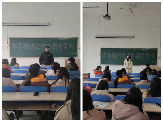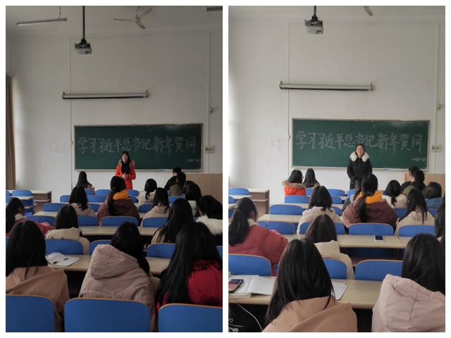 学习结束之后,同学们争先上台发表感言,朱阳城同学说:虽然这一年备受新冠疫情的侵扰,但是回顾抗疫历程,那些逆行者们和医护人员,他们在各自岗位上的无私奉献的奋斗精神,成就了中国抗疫的成功,诚如习近平在贺词中讲到的“每个人都了不起!”。陈金婷同学说,从习近平贺词中还有一个让我们振奋的事就是脱贫攻坚创造了世界奇迹,虽然受到了疫情的巨大冲击,但是我们的经济发展取得了重大成果,脱贫攻坚取得了决定性胜利。熊思思同学说:柳书记和孙校长的元旦贺词令人倍感鼓舞,作为一名高职学生,今后要倍加努力,用实际行动学好专业基础知识,争取升入本科,继续深造。接着谭小龙、郭倩、曾世燕等同学也上台发表自己的感言。