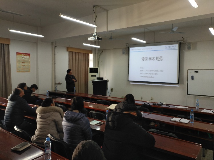 核资源与环境国家重点实验室冷成彪教授做了学术规范方面的培训。学术规范是什么?又涉及哪些内容呢?通过举例翔实的案例让大家有了一个清楚的概念。最有引用孙贤鉥先生的一句名言作为勉励各位新增硕士生导师:“业余选手总是沉醉于自己的成绩中,而真正的科学家总是看到自己的不足”。