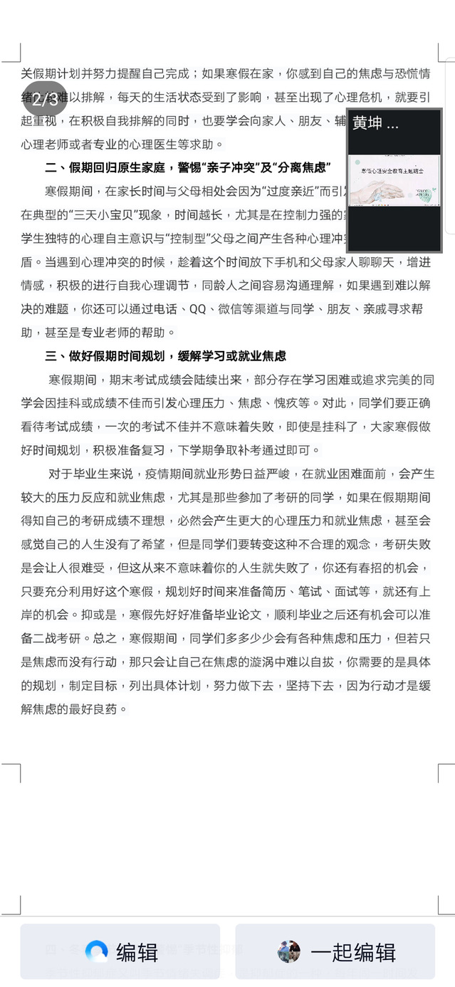 此次学院通过知识科普、话题讨论、主题班会等多种形式开展心理卫生教育,提高了同学们对心理健康问题的关注度。在开展主题班会的过程中,有效普及了心理健康知识,提升了心理保健意识,对假期疫情防控期间学生心理安全具有重要意义。(图/各年级 文/胡敏)