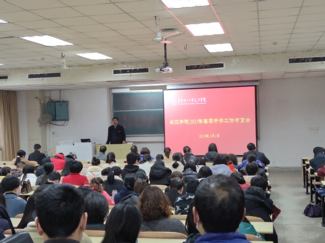 3月1日下午春雨潇潇,抚州校区二教阶十内充满祥和的气氛。我院全体教职员工欢聚一堂,共同参加2021年春季开学工作布置会。学院党委书记陈泉水、院长邹自力、党委副书记陈凌、副院长陈坚出席了大会,会议由党委副书记陈凌主持。