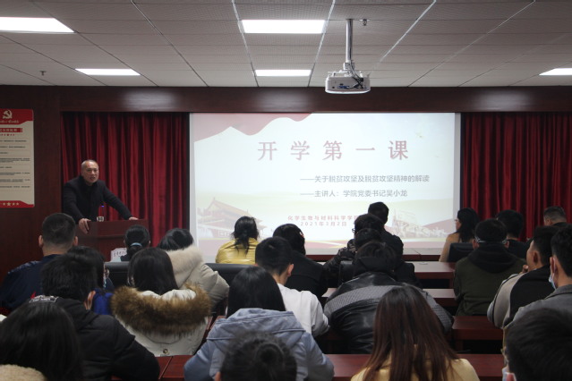 学生2021年是我国脱贫攻坚收官和乡村振兴战略实施交汇的特殊时期。为进一步加强我院学生的思想政治教育工作,3月2日晚7点,学院党委书记吴小龙在核工楼604会议室为学院各班班长、团支书、学生会干部等100余人上了一堂生动的开学第一课。学院党委副书记马建国、学团办主任贾海英及辅导员参加了这次讲座。