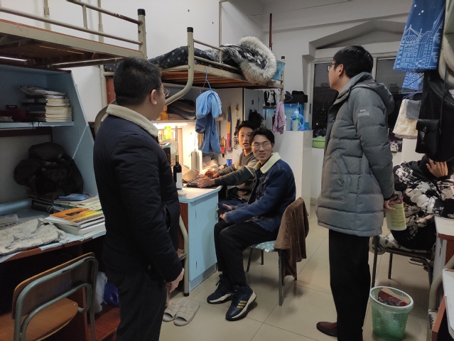 为及时了解返校学生的学习生活情况和思想动态,3月2日晚,地球科学学院党委副书记李铧生带领全体辅导员深入学生宿舍看望返校学生。