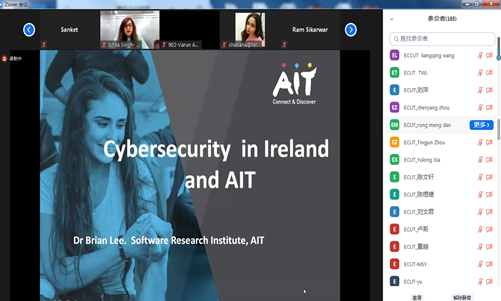 3月4日晚,在校国际合作与交流处的协调下,软件学院中外合作班2018、2019、2020级35名同学受邀参加了阿斯隆理工学院(AIT)举办的网络空间安全在线研讨会。来自中国、土耳其印度等全球200余位学者、研究员参加了此会议。会议由AIT软件中心主任Brian Lee博士和软件工程系主任Enda Fallon博士联合主持。