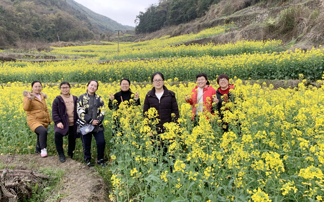春回大地,万物复苏,茶花,油菜花,紫金………百花争艳。参观完方志敏烈士纪念园之后,核工学院的女教职工开展了一场回归自然之旅。经过了40多分钟的车程,几百道转弯之后,大家抵达了湾里的梯田油菜花集中地-牛岭村。漫山遍野的油菜花美不胜收,还伴随着山泉水的叮咚乐曲声,大家都陶醉在此情此景此风此水此乐曲中。回归自然,拥抱生活,大家内心一片peace and love。有爱好植物的老师,给大家科普路边的野花野菜,有的老师从路边挖了一些青苔装上,准备回去装饰家里的花盆。顺着山路往下,最后来到了谭源刘家水库,水库后面是梅岭山脉,氤氲的水流淌着,这画面简直就是中国水墨画,大家不约而同的停驻欣赏,倘佯在山水美景之中,内心得到平静,心灵受到洗涤,深刻感受到生活的美好,对未来充满信心。(图/贺锦 刘玉娟 文/彭玲玲)