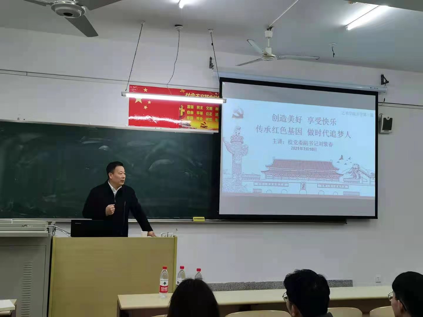 为认真贯彻落实习近平总书记在党史学习教育动员大会上的重要讲话精神,帮助学生树立正确的人生观、世界观、价值观,厚植爱国主义情怀,以积极的精神风貌投入到新学期的学习和生活中,3月10日下午,校党委副书记刘紫春以“创造美好、享受快乐,传承红色基因、做时代追梦人”为主题讲授“开学第一课”,艺术学院党委书记、党支部书记、辅导员和学生党员及学生代表在抚州学府校区二教113聆听了讲座。