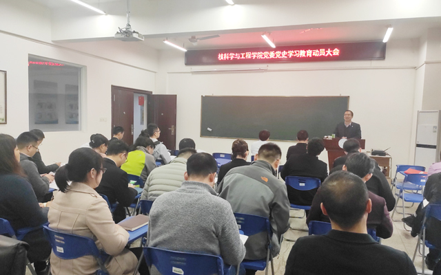 3月16日下午,核科学与工程学院党委在地学楼C503会议室召开党史学习教育动员会,传达中央、省委、省委教育工委、学校党委关于党史学习教育的有关精神,并就学院党史学习教育进行动员部署。全院教工党员参加会议。会议由院党委书记余斌主持。