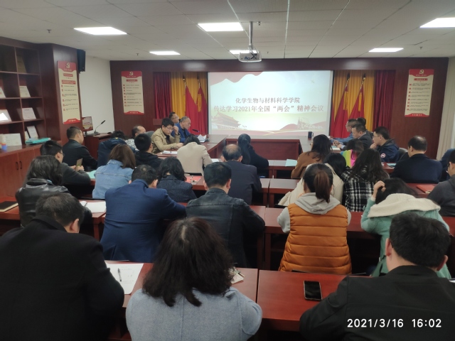 会议指出,今年的全国两会,是在“两个一百年”奋斗目标的历史交汇点上、全面建成小康社会取得决定性成就、乘势而上开启全面建设社会主义现代化国家新征程的关键时期召开的一次承前启后、继往开来的重要会议。全院师生要提高政治站位,切实增强“四个意识”、坚定“四个自信”、做到“两个维护”,学院各党支部要精心组织师生认真学习贯彻习近平总书记重要讲话精神和全国“两会”精神。要把全国“两会”精神学习教育与当前的党史学习教育结合起来,在学懂弄通做实上下功夫,要结合工作实际深入思考,科学谋划、全面贯彻,推动学院工作稳固发展。