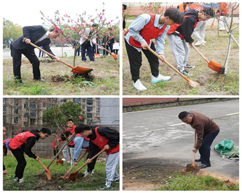 和煦春风拂面来,造林绿化正当时。在第43个植树节来临之际,东华理工大学长江学院党委书记陈泉水、院长邹自力、党委副书记陈凌、副院长陈坚,东华理工大学后勤党总支书记曾文声以及学工团委老师与广大志愿者一起,来到校园绿化改造区参加义务植树施肥活动。