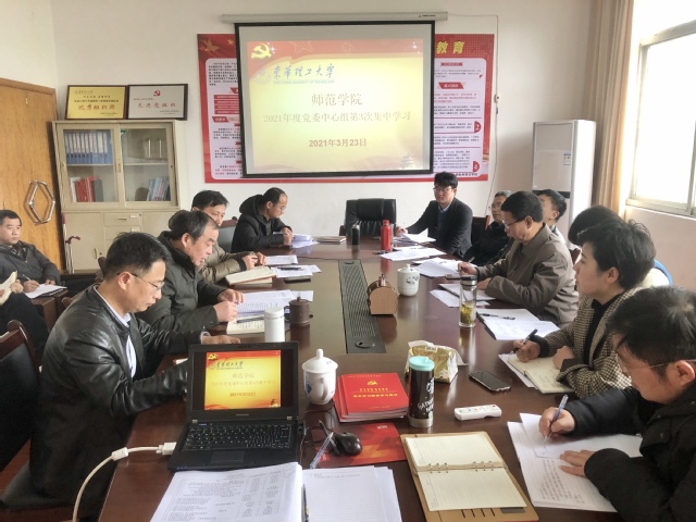 3月23日上午,师范学院党委在抚州校区学府校园行政楼339会议室召开2021年理论学习中心组第3次学习会,学院中心组成员及各科室负责人参加会议。会议由院党委书记章国平主持。