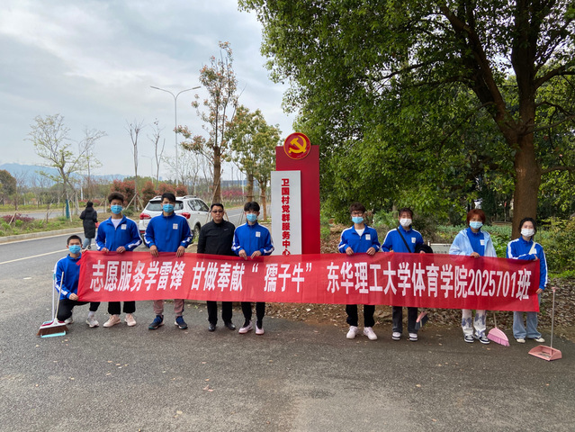 为弘扬雷锋精神,倡导“奉献、友爱、互助、进步”的志愿精神,3月20日,东华理工大学体育学院班主任李友良博士与2020级体教1班的志愿者在南昌市蛟桥镇卫国村开展“学雷锋甘做孺子牛”主题活动,争做新时代为社会服务的孺子牛。
